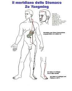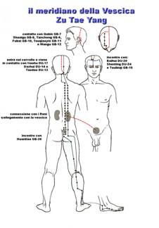 - Zu Yang Ming Wei Jing: I punti di tale meridiano sono attivi sui Liquidi, sul Sangue, nella parilisi con flaccidità, nelle agitazioni e nelle follie.