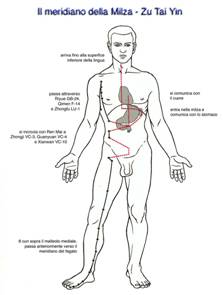 - Zu Tai Yin Pi Jing: I punti del Meridiano trattano i Liquidi, il Sangue, L'Energia. Sono importanti nelle disfunzioni digestive.