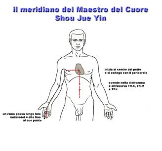 - Shou Jue Yin Xinzu Jing: I punti trattano l'apparato cardiovascolare, Il Sangue e lo Shen.