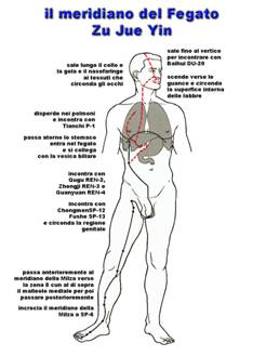 - Zu Jue Yin Gan Jing : I punti trattano i genitali, il Sangue, le funzuioni digestive, la libera circolazione del Qi.